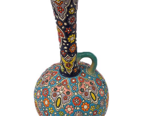 جنس: سفال با لعاب مینا – نوع طرح: اسلیمی ختایی – نوع تکنیک: سفال میناکاری شده – گروه هنری: صنایع دستی سفال – سبک طرح: سنتی – زیرگروه هنری: سفالکاری