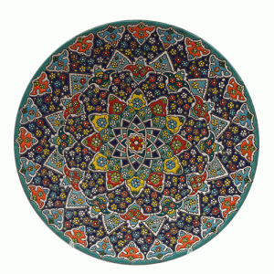 بشقاب سفالی میناکاری شده طرح لبه هشتی