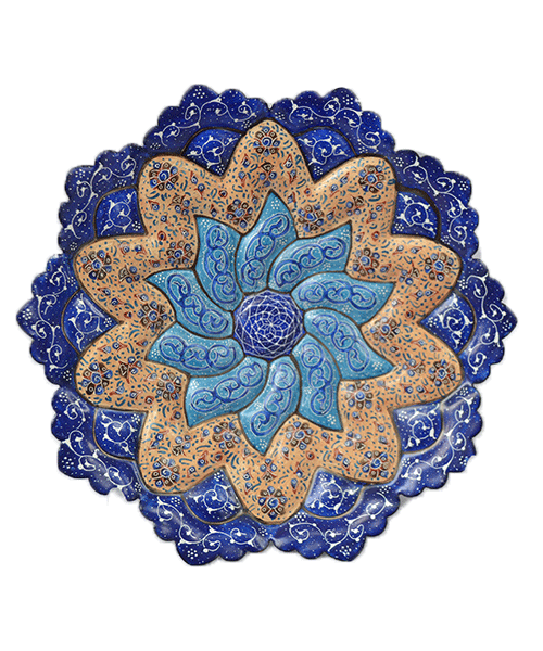 جنس: مس با لعاب مینا – نوع طرح: اسلیمی ختایی – نوع تکنیک: مس میناکاری شده – گروه هنری: صنایع دستی فلزی – سبک طرح: سنتی – زیرگروه هنری: میناکاری
